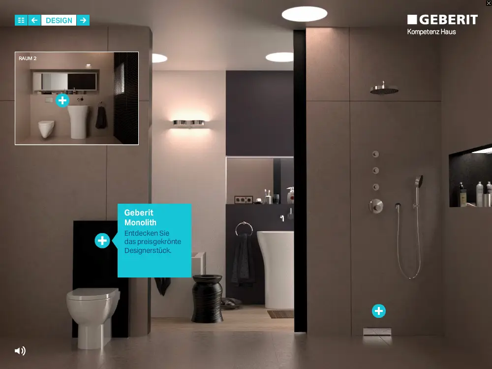 Das virtuelle «Kompetenzhaus» macht Geberit-Produkte vor und hinter der Wand erlebbar.